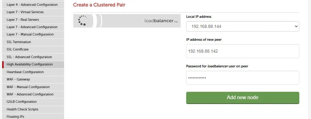 5. Enter the password for the load balancer user on the peer.