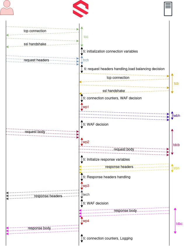 - ti (time idle): Time spent by SKUDONET HTTP(S) profile managing data, checking requests well-formed, checking headers, load balancing decisions, Persistence session management, logging messages, etc.