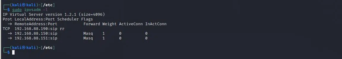 ipvsadm -A -t 192.168.88.190:5060 -s rr
