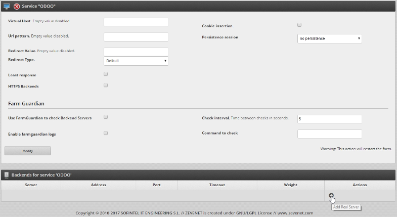 With Zevenet Load Balancer we can ensure high availability and prepare for mass scalability for Odoo services by following the steps below.