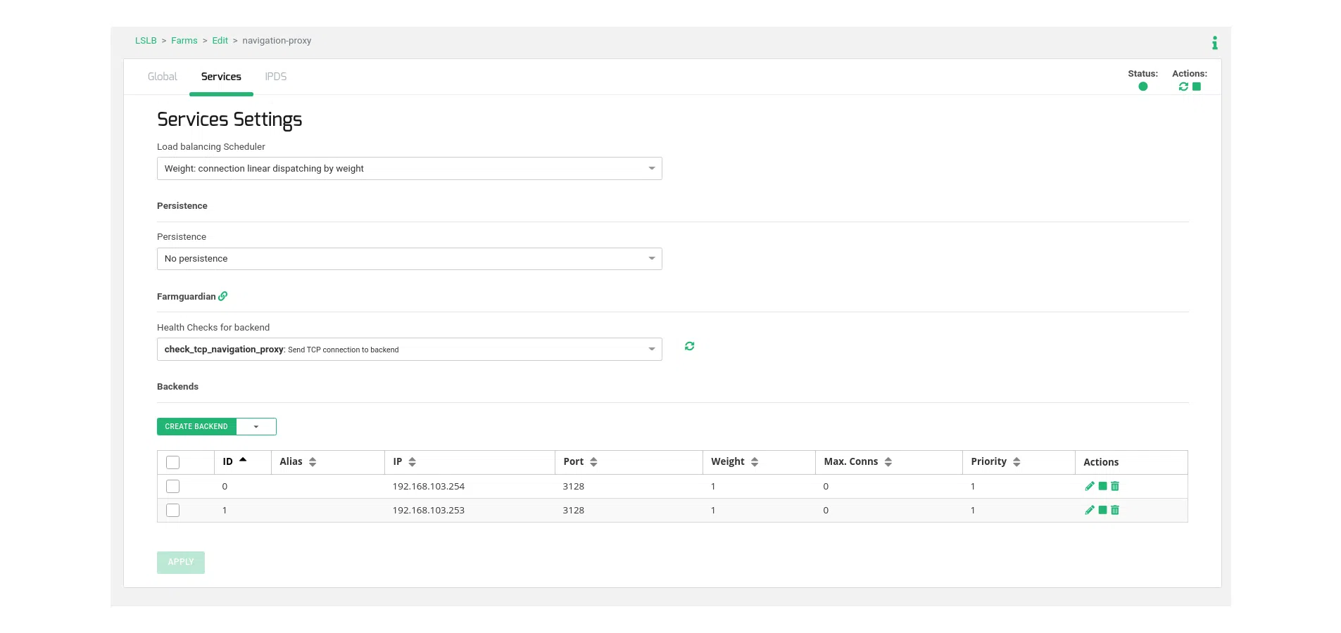 Subsequently, navigate to the Backends table within the same section, and include the actual web navigation proxy servers responsible for managing user connections.