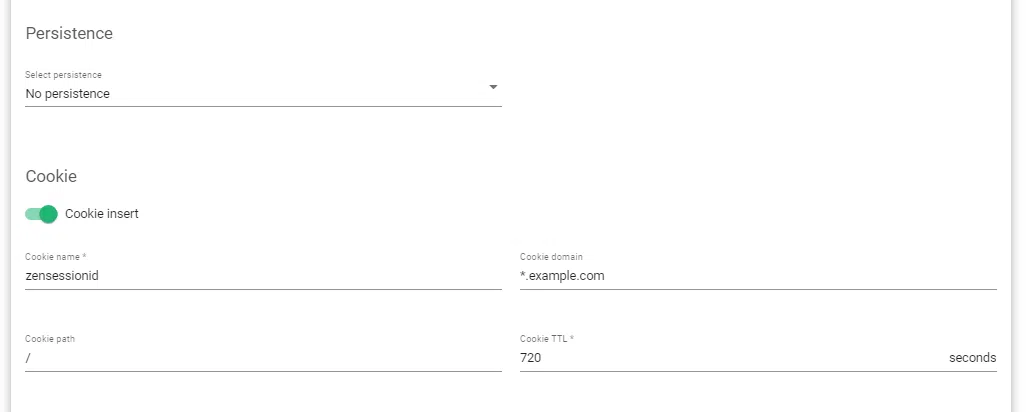 6. To enable session persistence using a cookie, Ignore step 4 and leave the Persistence field at No persistence.