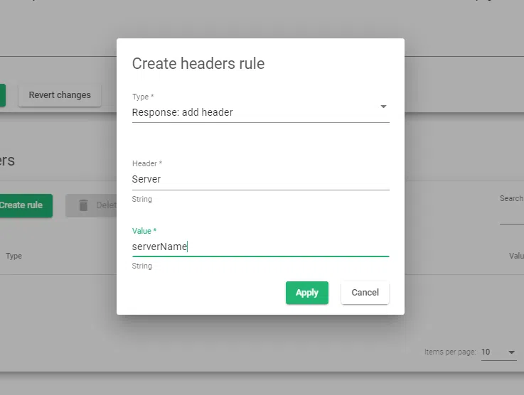 9. Enter the header whose value you want to modify. For this example, we will change the value of Server header.