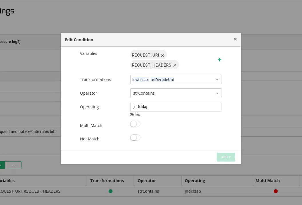 Securing your applications from the Log4j vulnerability using the SKUDONET Web Application Firewall involves the following steps:
